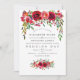 Invitations de mariage à fleurs d'aquarelle avec roses et pivoines rouges, violets, roses et bordeaux.