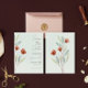 Fleurs d'aquarelle rouge avec feuilles vert sauge sur un arrière - plan personnalisé vert pâle personnalisable enregistrer l'invitation de date.