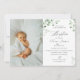 Aquarelle fleurie invitation au baptême avec eucalyptus minimaliste.