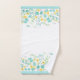 Serviettes de bain avec une bordure florale aquarelle bleu turquoise et jaune. Belle pour la sportivité et l'été - Kate Eden Art.