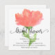 Cette invitation à la douche nuptiale présente une belle fleur d'aquarelle corallienne dans l'arrière - plan et les détails de la douche nuptiale au premier plan.