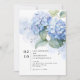 Moderne et élégant. Cette belle carte simple à plat dispose d'un bouquet floral d'hydrangées bleues fraîches en pleine floraison, contre des accents d'aquarelle bleue. Un ensemble de polices contemporaines crée un ton moderne et frais.