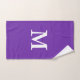 Fleurs violettes romantiques aux accents blancs et aquarelle feuille verte contre arrière - plan violet. Personnalisez l'initiale monogrammée en texte blanc sur la serviette solide du milieu. Oeuvre originale Design par TamiraZDesigns.