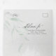 Feuilles d'eucalyptus vert sauge pâle jumelés à un arrière - plan de brosse d'aquarelle abstrait moderne en gris et blanc ultime - le tout en une invitation de mariage avec un choix de repas détachable préadressé rsvp pour vos invités à envoyer facilement retour