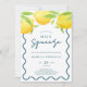 Fraîche, amusante et parfaite pour une fête estivale - notre Watercolor Main Squeeze Citrus Lemon Bridal Shower Invitation présente des citrons peints à la main et une verdure feuillue associée à une typographie bleue et un cadre élégant à pétoncles. Contre un arrière - plan blanc cassé, ce design mêle un thème agrumes moderne à une calligraphie script romantique pour créer un invitation de douche nuptiale gai et élégant. Idéal pour une douche nuptiale au thème du citron ou une soirée "main squeeze", cette invitation est aussi charmante qu'unique. Customisez votre invitation dans la section Personnaliser ce modèle en ajoutant le nom, la date et les détails de l'événement de la mariée. Choisissez parmi une variété de types et de tailles de papier pour convenir à votre style de célébration. Choisissez entre des impressions et/ou un téléchargement numérique instantané. Design original par Ana Garza/Kardz Studio. N'hésitez pas à me contacter par l'intermédiaire du Conversation Zazzle si vous avez des questions.