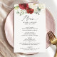 Aquarelle Maron Rouge Blanc Floral Mariage Menu