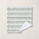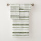 Aquarelles modernes de rayures vertes serviettes de bain dressées sur un arrière - plan blanc. Visitez notre boutique pour voir un rideau de douche assorti.