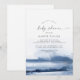 Cette invitation moderne au baby shower bleu aquarelle est parfaite pour un baby shower contemporain et élégant. La collection design minimaliste, classique et élégante présente de simples touches de peinture couleur à l'eau dans de jolis tons bijoux.