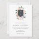 Elégante invitation de mariage avec une poitrine d'or rose aquarelle entourée de fleurs rousses, pêche et roses et feuillage vert luxuriant. Personnalisez avec vos initiales dans la crête monographique. Customisez avec vos informations ou cliquez sur "Cliquez pour customiser plus loin" pour modifier les styles, la taille et les couleurs des polices.