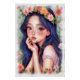 Aquarelle, ein junges, langes, dunkles Haar, Kartoonstil mit einer Krone von Blumen in einem Blumenrahmen. Passt sehr gut zu einer Betreuung in einem Kinderzimmer