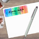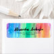 Design moderne personnalisé d'étiquette d'adresse de retour avec un arrière - plan d'aquarelle couleur arc-en-ciel avec votre nom écrit dans un script sophistiqué. Le texte est entièrement personnalisable.