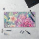 Ce tapis de bureau coloré présente une belle image de roses d'aquarelle et de fleurs dans les tons pastel rose, corail et sauge avec des touches de bleu et violet. Ce tapis est l'ajout parfait à n'importe quel bureau, bureau ou bureau.
