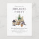 Cette carte postale confortable et rustique d'invitation à la fête de vacances présente une aquarelle illustrant un mignon gnome féminin assis à côté d'un arbre de Noël miniature, un panier de billes de bouleau et quelques bougies. Les mots "Fête" apparaissent dans des lettres serif grises qui se coordonnent avec l'art. Ajoutez l'heure de la fête, l'emplacement et d'autres détails ci-dessous, et votre adresse de retour au verso.