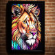 Lion Aquarelle Style Verre Tissé. Le rapport d'aspect est de 2:3 Il a été conçu pour être imprimé comme 24"x36"
