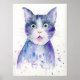 Aquarelle Surprised Cat Canvas Imprimer créé par l'artiste Cheng Jing. Les couleurs sont le bleu contemporain, le violet et le noir. Le portrait est très détaillé, mais en même temps il y a une impression abstraite. Le chat a l'air mignon et surpris avec sa bouche légèrement ouverte. La taille de l'affiche peut être customisée. Le texte peut être ajouté.