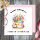 Carte d'anniversaire avec une aquarelle représentant un gâteau d'anniversaire sucré et festif