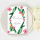 Tropical Palms Aquarelle Nuptiale invitation douche. Le design comprend un élégant bouquet d'aquarelle de plage classique, de la verdure et des fleurs, dont l'hibiscus rose vif, l'oiseau orange et bleu du paradis, la verdure verte et la feuille de palmier vert foncé.