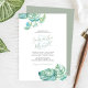 Ce simple faire-part de mariage de verdure présente vos noms dans une typographie manuscrite stylisée avec des détails de l'événement dans une police serif gris charbon classique sur un arrière - plan blanc croustillant avec une frontière de mes feuilles de paume monstère d'aquarelle d'origine dans les tons bleus, verts et turquoise. La carte invitation revient à une couleur verte sauge tropicale offerte. Un choix botanique mais élégant pour la plage décontractée, Florida Keys, Caraïbes et mariages côtiers. Pour voir toute ma suite de papeterie mariage visitez DoTellABelle sur Zazzle.
