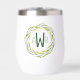 La verdure aquarelle forme une couronne d'armature et offre un cadre élégant pour votre nom, initiales ou monogramme sur cet élégant design de cave à vin thermique. Utilisez le modèle fourni pour ajouter vos initiales comme indiqué. Recherchez ID667 pour voir d'autres produits avec cette conception.