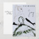 Un modèle de mode aquarelle peint à la main portant une robe de Noël et des gants noirs sur une carte de vacances design