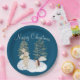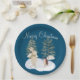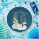 Diese individuelle Weihnachts- oder Feiertagsplatte bietet eine warme und gemütliche, schneebedeckte Wasserfarbenwelt im Winter. Zwei niedliche kleine Waldtiere, ein Igel und ein Hase, sind zwischen den Bäumen eiskalt Skaten. Der Hintergrund ist reich königsblau.
