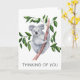 Moderne Aquarellfarben erhalten eine gute Karte, die auch für verschiedene Anlässe geeignet ist. Karte mit Aquarellbild des Koala Bären und ''Denken an dich'' in trendiger Schrift. Klicken Sie auf Anpassen, um Ihre eigene Nachricht hinzuzufügen usw.