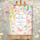 BABY GIRL SHOWER WELCOME SIGN - Passen Sie Ihre Mutter und Ihr Baby an, um sie und alle Ihre besonderen Gäste willkommen zu heißen. Originelle Kunst, Aquarellblasse Pastellfarben, modernes Blumendesign ist frisch und schön! Eine rosa Hintergrundfarbe kann für Ihre eigenen Farben ausgetauscht werden. Der sechseckige geometrische Textrahmen ist mit zwei dünnen Bändern digitaler Glitzer-Grafik versehen. Copyright, Audrey Jeanne Roberts.