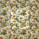 Ein Feld weißer Gänse mit gelben Mittelpunkten, in Aquarellen gemalt.