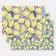 Hübsches und zartes Zitronenmuster in gelber Farbe auf blauem und weißem mediterranem Kachelboden. Originelle Kunst von Nic Squirrell.