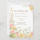 Schönes rosa und goldfarbenes Blumenmuster mit brauner Schrift und Typografie in dieser eleganten Hochzeitseinladung.