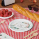 Aquarellfarben Rosa Weiße Blume Grüne Rahmen Hochz Pappteller