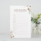Machen Sie Ihr Brautparty blühen mit Spaß und Spannung mit unserem Watercolor Wildblume Bridal Word Scramble Game! Dieses wunderbare Brautwortspiel bringt Freude und Lachen zu Ihrem besonderen Tag! Sehen Sie, wie sich Ihr Brautparty und Ihre Gäste in Gruppen zusammenschließen oder allein arbeiten, um die Hochzeitsworte auf jeder schön gestalteten Karte zu entschlüsseln. Der erste, der die gerissen Wörter richtig entziffert, gewinnt! Es ist die perfekte Aktivität für Ihr boho Brautparty, das alle lächeln lässt. Und das schöne Blumenwerk in Aquarellfarben macht es zu einem wahren Sake, an dem sie gewollt werden. Gönnen Sie Ihren Gästen ein unvergessliches Erlebnis mit diesem Muss-Brautparty-Spiel!