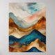 Aquarellfarbene Abstrakte Landschaftsmalerei Gold Poster