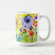 Hübsche rosa, gelbe und lila Aquarellkunst Blume Blumenkaffee Tasse. Geben Sie im personalisierten Bereich den ersten Eintrag ein.
