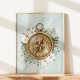 Das Blumenplakat für unsere Aquarellfarben-Blume und die grünen Blätter. Mit einer atemberaubenden Aquarell-Illustration eines Bronzekompasses, umgeben von einem Kranz von Blätter und Blume auf grünem Salbeihintergrund.