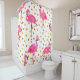Aquarellfarbene Flamingos mit goldenen Punkten nah Duschvorhang