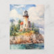 Aquarellfarbener Leuchtturm an der Küste Hintergru Postkarte