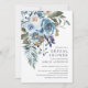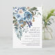 Schöne blaue Aquarell-Blume Blumendusche laden Set auf einem knalligen, weißen Hintergrund ein. Dreh unseren Polterabend und lade Sie ein, sich eine koordinierende blaue Aquarellfarbe für eine besondere Touch anzusehen