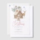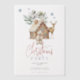 Charmante Weihnachtsbild mit einem gemütlichen Lebkuchenhaus mit Vereisungsdetails, einem niedlichen Eisbären in Schal und Hut und einem anmutigen Rentier. Umgeben von festlicher Vegetation, Misteloe und zarten blauen Blumen, vereint dieses skurrile Urlaubsdesign den Zauber und die Wärme der Wintersaison.