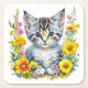 Aquarellkätzchen in Gelb und Rosa Blume Rechteckiger Pappuntersetzer