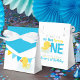 Aquarellkautschukente Geburtstagsduck Leckerei Gönnen Geschenkboxen. Perfekte Ergänzung für jede erste Geburtstagsfeier. Oh so Spaß, ONE auf die Rückseite + Name Personalisierung und danke Ihnen. in blau und gelb in weiß