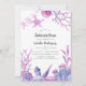 Weiß rosa und blaue Ozeanthemen Quinceanera Einladungen mit Meerfernn, Algen, Korallen, Muscheln und Seestern, die schnell und einfach auf Ihre Event-Besonderheiten angepasst werden.