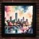 Aquarellmalerei von Stadt mit Fluss Das Seitenverhältnis ist 1:1. Es wurde als 20"x20" 16"x16" 12"x12" gedruckt