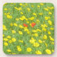 Aquarellbild mit zwei roten Mohn und gelben Blumen auf der Wiese