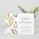Diese schicke Küsten-Austern & Champagner-Party Einladung für jeden Anlass bietet weiche Creme und Aqua Aqua Aquarellauster, Perlen und Flötenflöten mit Champagner und Austern-Eventdetails in klassisch marineblau. Ideal für Partys zum Thema Strand, Sommer oder Wassersport, um einen Geburtstag zu feiern.