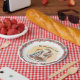 Aquarellfarbene Rose und eine Krippe schmücken diese schönen Teller, um Sie an das Kommen des Messias zu erinnern. Die Wörter auf dem Teller sind anpassbar.