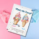 Die Niedliche, moderne und trendige Party Einladung des Eis Cream Gender Reveal zeigt eine Party Einladung-Karte mit einer Aquarellillustrierung von Eis in Waffeltönen in Rosa und Blau mit goldfarbenem Eiscreme. Im Text steht: "Was ist der Koffer? Junge oder Mädchen?" Ideal für ein Gender-Enthüllungs-Party im Sommer.
