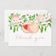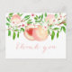 Hübsche Aquarellpfirsiche und kalligrafischer Schriftart schmücken dieses Postkartendesign, das sich perfekt für Dankeschön-Karten für ein Brautparty oder ein Baby eignet.