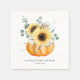 Diese Babyduschpapierservietten sind mit einem Aquarellkürbis-Design mit Sonnenblumen, Eukalyptus und Baumwollakzenten ausgestattet. Die sanften Herbstfarben machen sie besonders gut für Herbstduschen geeignet, besonders wenn Sie ein rustikales oder neutrales Thema suchen. Sie können die Servietten mit einem Namen, einem Datum oder einer kurzen Meldung personalisieren, um sie an Ihre Veranstaltung anzupassen. Diese Wasserfarbenkürbis-Papierservietten sind eine einfache Möglichkeit, Ihre Tischanordnung gemeinsam Krawatten und eine persönliche Touch hinzuzufügen. Ideal für Getränkestationen, Desserttische oder Orte.