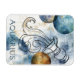 Aquarius the water bearer is the 11th astrological sign in the zodiac and represented here with a hand drawn water jug in black and featuring blue and gold planets on a dreamy blue background with gold stars and flowers. This is a unique gift for an astrology enthusiast or someone born under the Air sign of Aquarius - January 20 to February 18.